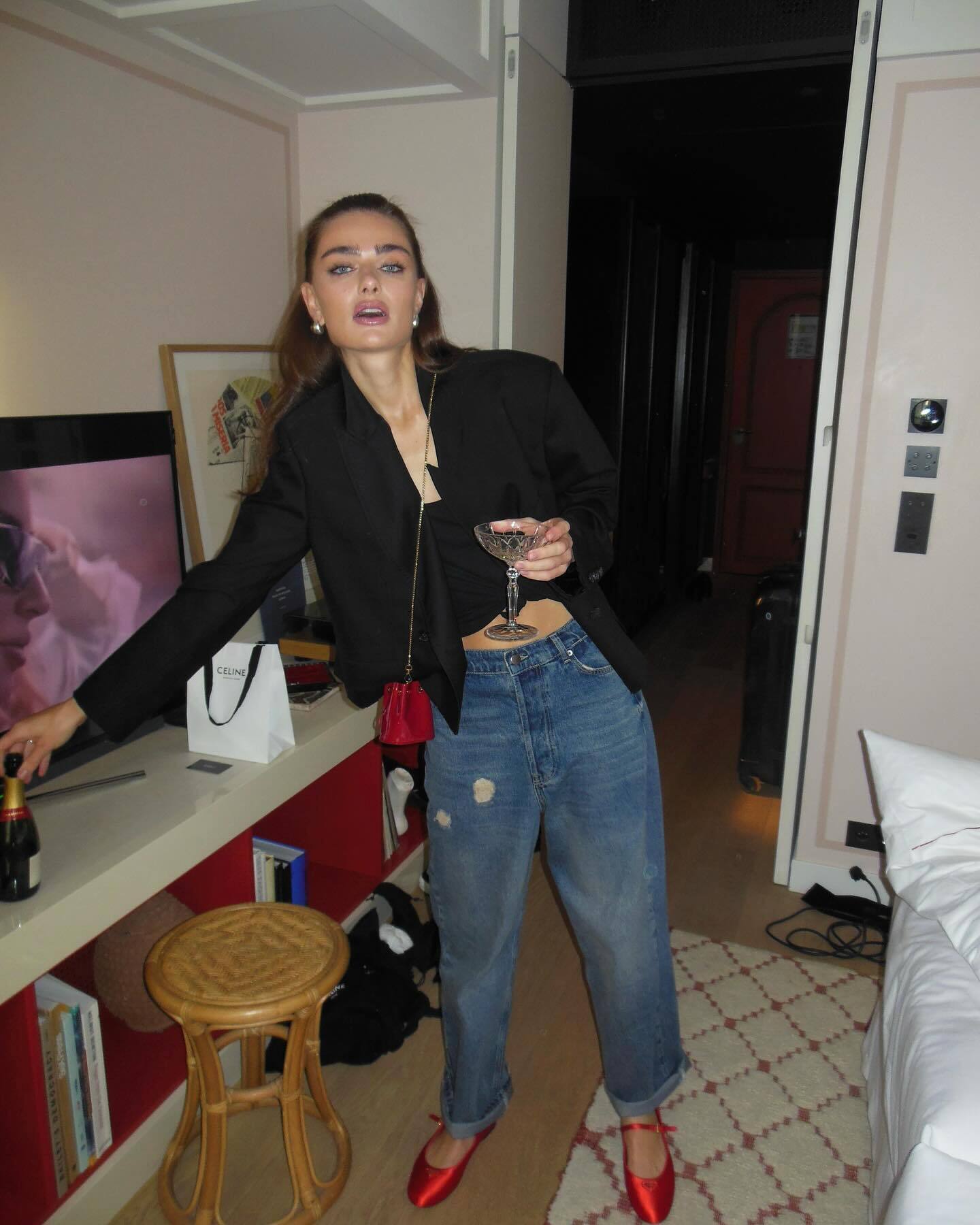 Пиджак из итальянской шерсти в глубоком чёрном цвете — вещь, в которой классика звучит по-новому. Сдержанный, но выразительный, он собирает образ без лишних усилий, становясь точкой опоры в вечернем или даже повседневном гардеробе. Уникальный винтажный эффект необработанного края придаёт ему особое очарование, а ткань, играющая на свету, раскрывает благородный блеск ткани.