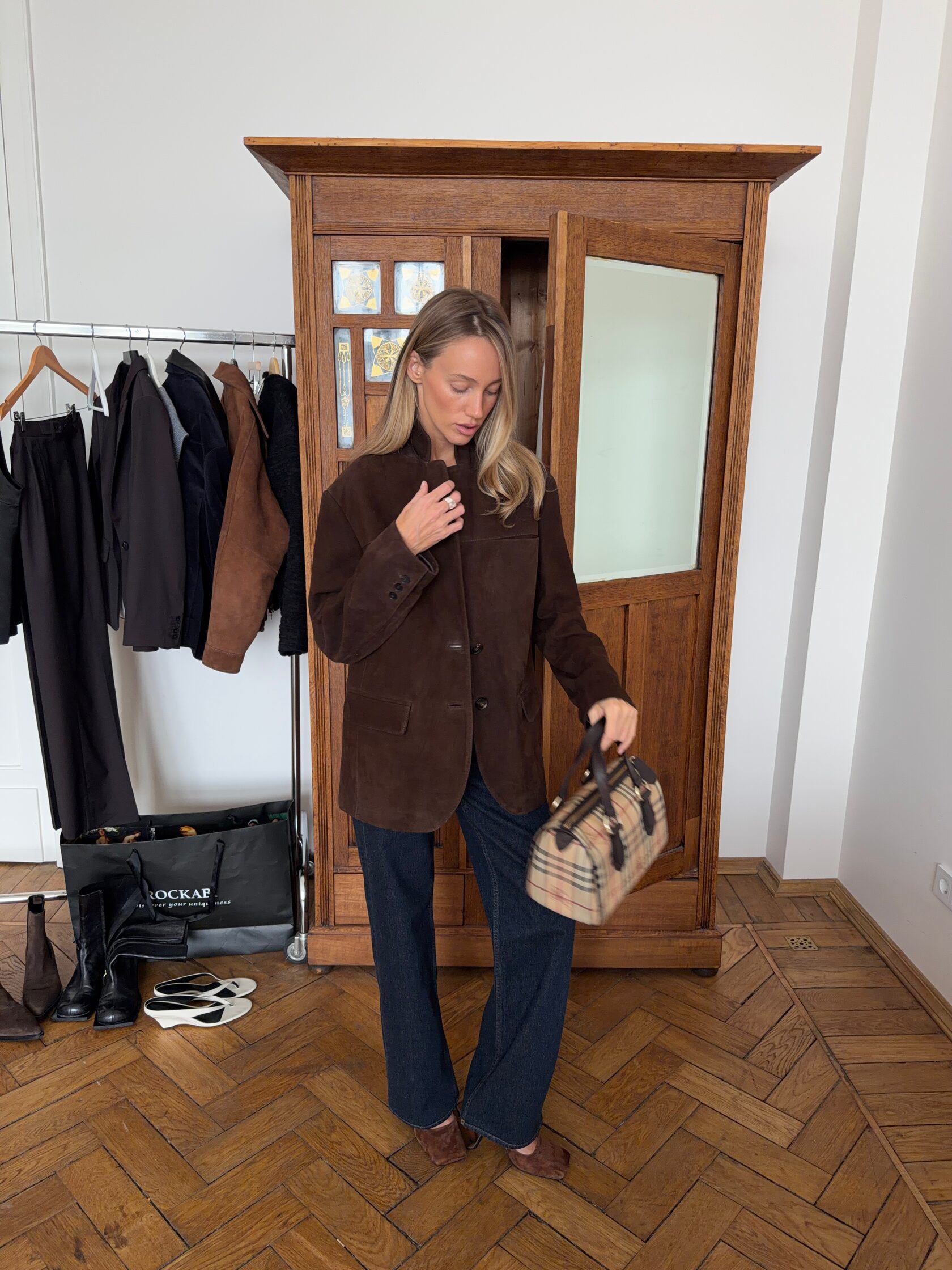 Замшевый пиджак Truffle — изделие с собранным, уверенным характером. Прямой силуэт и классическая длина создают спокойную архитектуру формы и сдержанную элегантность. Мягкая замша трюфельного оттенка поглощает свет, раскрывая глубину цвета и природную выразительность кожи. Роговые пуговицы деликатно продолжают эту линию — природная деталь, в которой чувствуется естественная красота материала. Аффирмация внутри "Во мне - любовь".