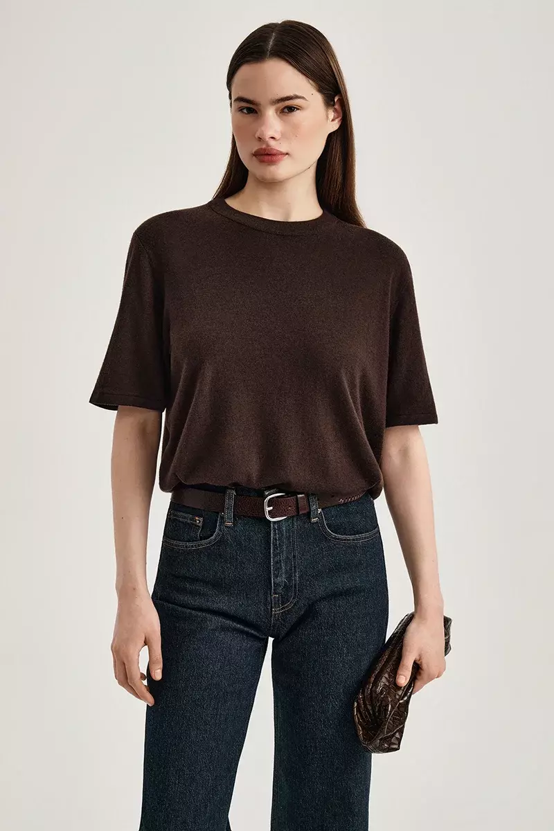 Чистый силуэт и гладкая поверхность ткани создают спокойную и элегантную основу, а тонкое кружево по нижнему краю добавляет образу деликатную женственность.