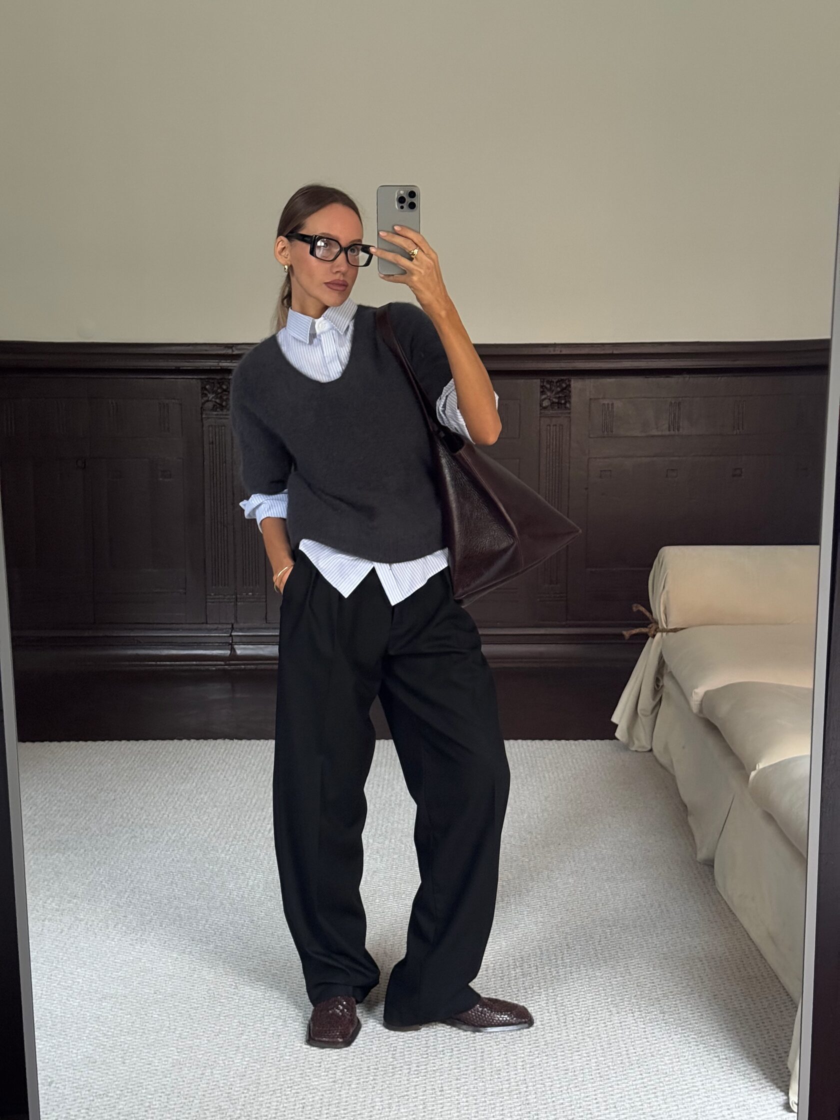 Этот джемпер из нежного кашемира в глубоких серых тонах — о минимализме и продуманной простоте. Кашемир всегда был выбором тех, кто ценит комфорт и качество: от аристократических гардеробов до минималистичных образов XX века. Его мягкое полотно бережно облегает силуэт, оставаясь лёгким и уютным. Лаконичный крой и спокойный цвет делают джемпер универсальной основой гардероба, которая естественно впишется во множество ваших осенних образов.