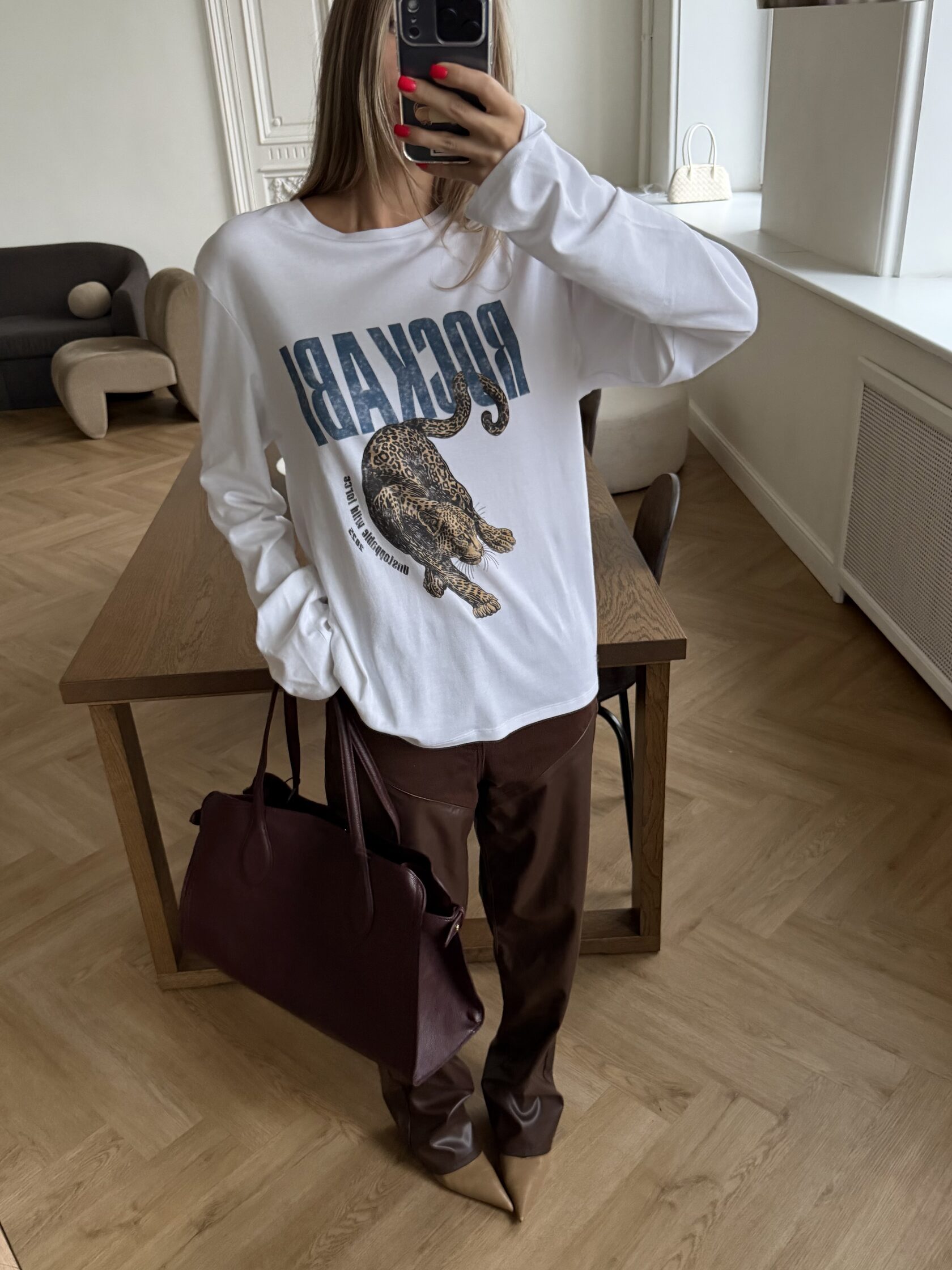 Свободный силуэт, удлинённые рукава и мягкая посадка создают лёгкую архитектурность, характерную для rockabi, и позволяют сочетать модель с любым гардеробом — от денима до строгих брюк.