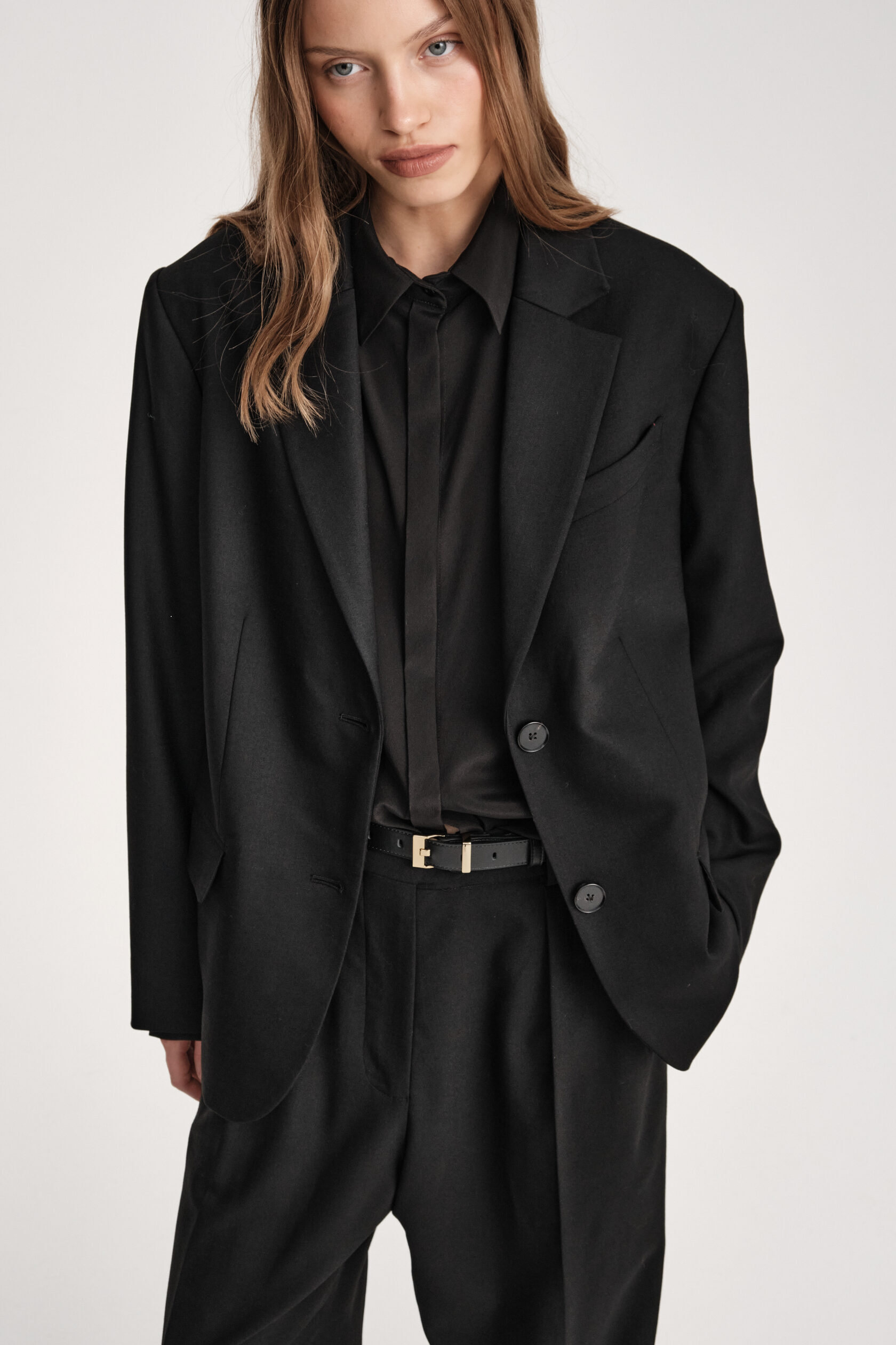 Брюки Timeless — классика, переосмысленная для современности. Шерстяные, с изящными стрелками и мягкими защипами спереди, они создают визуальный эффект удлинённых ног и стройного силуэта. Форма вдохновлена мужским гардеробом, но мягко адаптирована под женскую фигуру — строгие и вместе с тем элегантные.