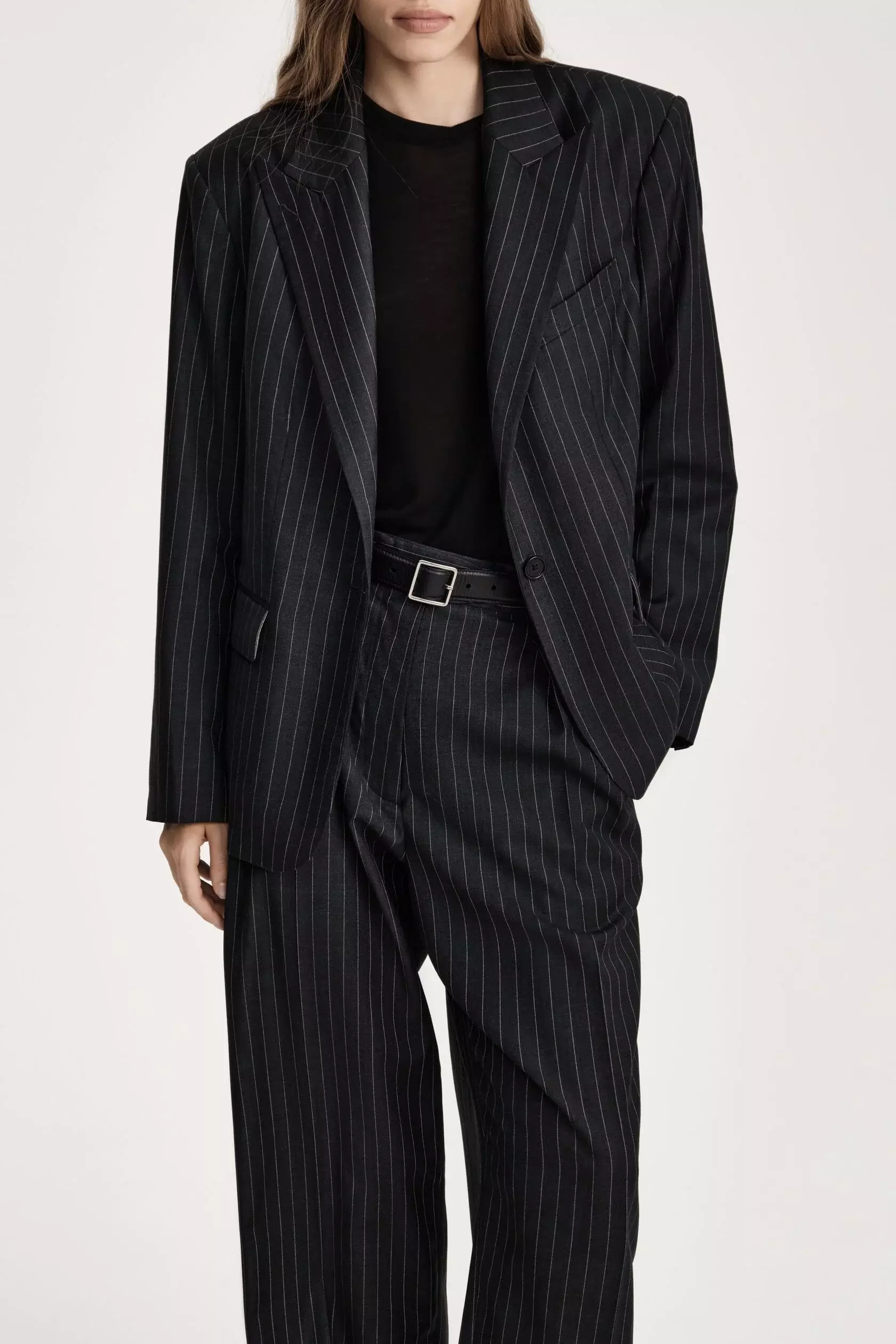 Timeless Stripes брюки — классические шерстяные брюки со стрелками и мягкими защипами спереди. Эти детали визуально стройнят ноги и удлиняют силуэт.