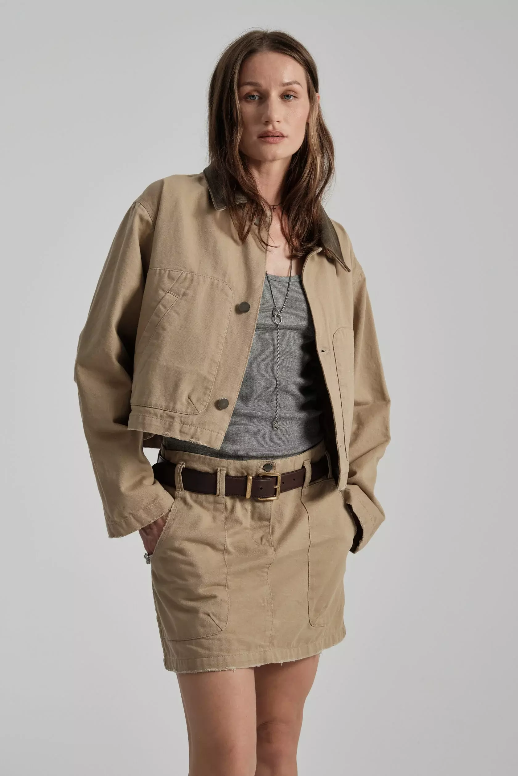 Юбка в длине мини составит отличную пару куртке из денима из нашей новой коллекции. Материал юбки - классический деним из натурального хлопка.