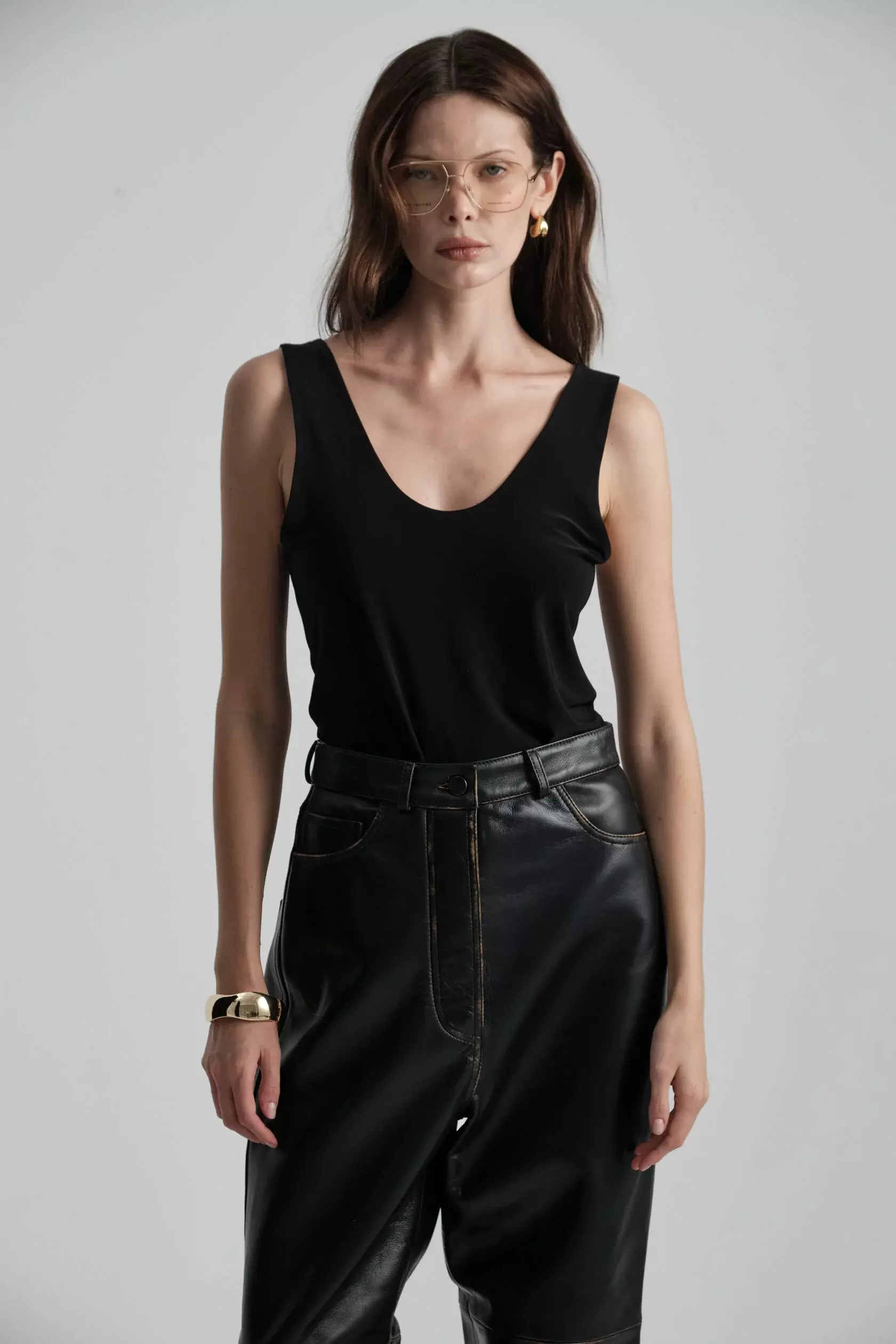 Кожаные брюки — про свободу в движении и в выражении себя. Мы выбрали мягкую кожу растительного дубления с живой, как будто виниловой текстурой — такой материал не только дышит, но и со временем становится только лучше, принимая форму тела и приобретая благородную патину. Посадка с объёмом в бедрах и мягко зауженной линией книзу создаёт тот самый расслабленный силуэт с характером. Это не просто база, а вещь с настроением — ироничным, независимым, чуть дерзким.